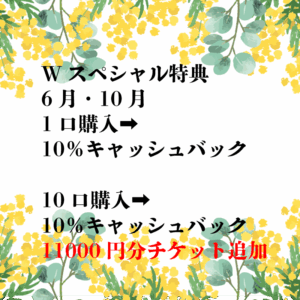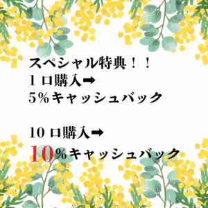 - 🌟 10口以上のご購入で10%キャッシュバック(3,000円分/口)
